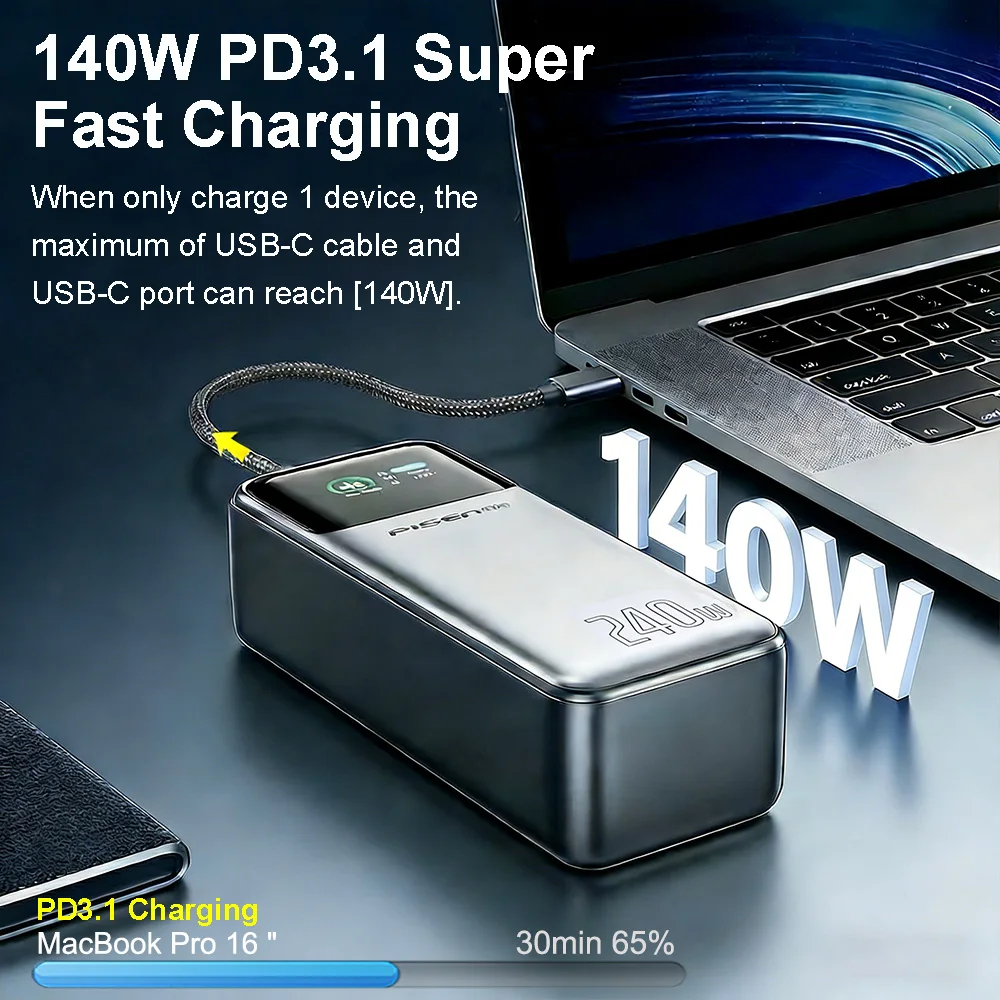 When charging 1 laptops, TP-D106 power bank support up to 140W PD3.1 fast charging.