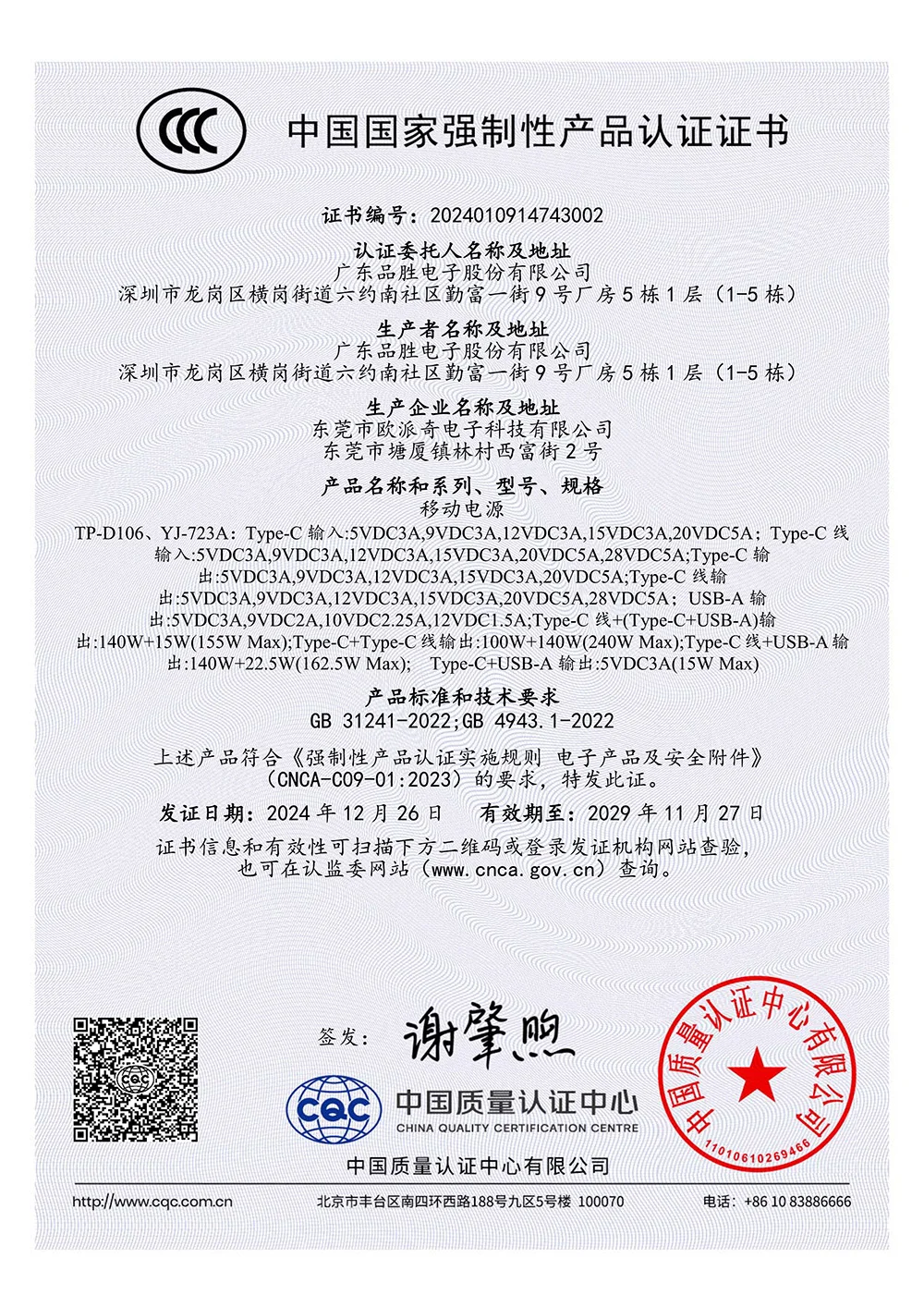 This product TP-D106 has China CCC certification, please feel assured to purchase.