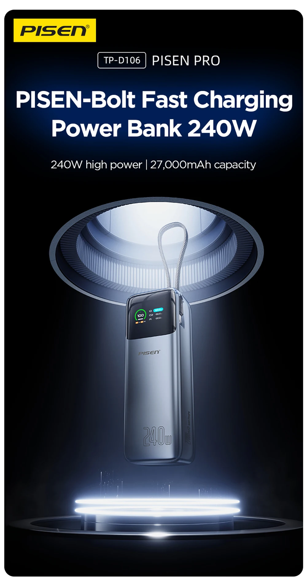 PISEN-Bolt Fast Charging Power Bank 27000mAh 240W