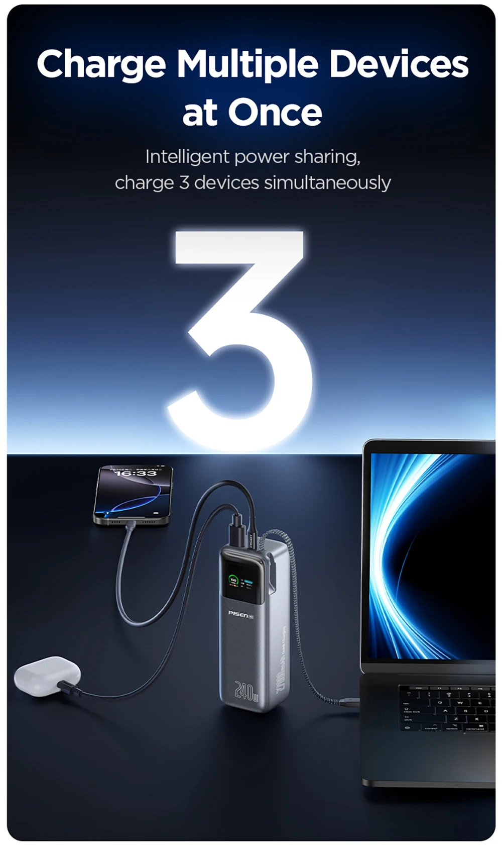 Intelligent power sharing, charge 3 devices simultaneously