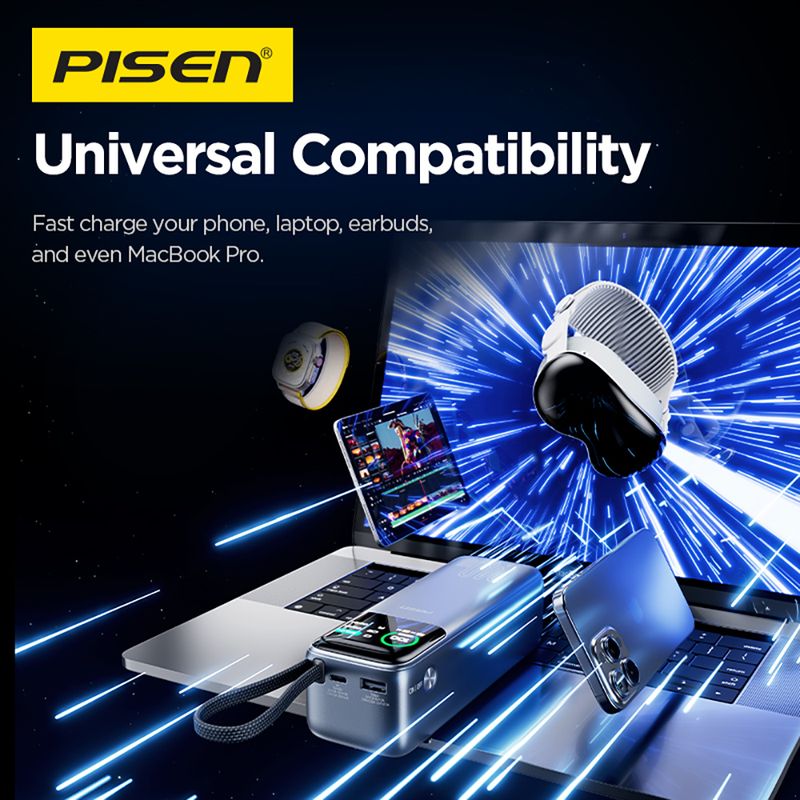 Powered by Pisen's 4th-gen fast charging technology, this power bank delivers ultra-responsive, high-powered charging with enhanced heat dissipation ā all in a compact design.