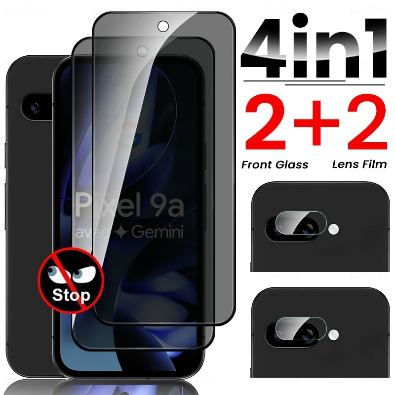 Pixle 9a 5G Glass 6 In 1 Privacy Tempered Glass Anti-Spy Screen Protector For Google Pixel 9a Pixel9a 9 a a9 5G 2025 Camera Film