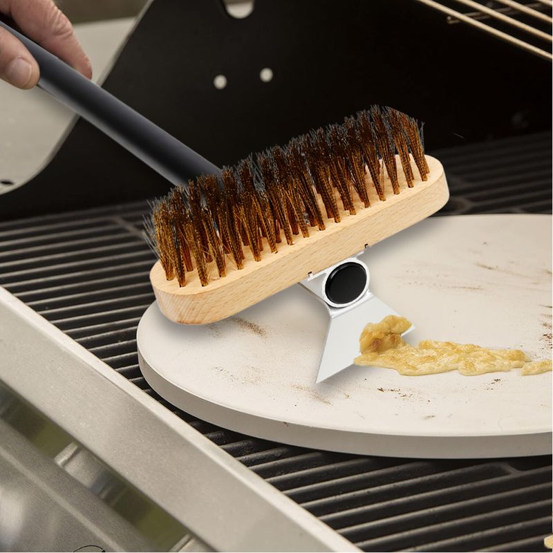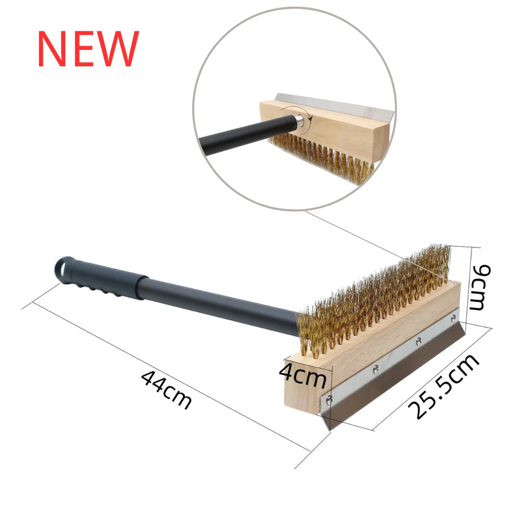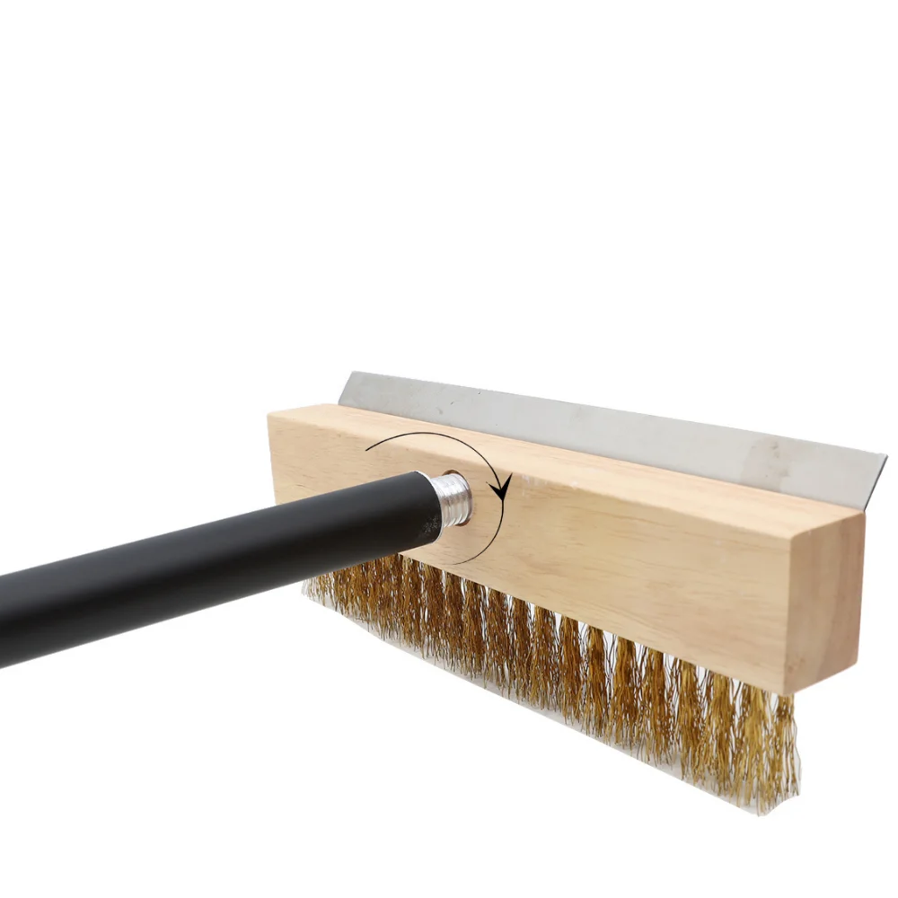 Pizza Oven Brush Copper Stove Brush Bristle Brass Wood Long Handle Grill Cleaning Oven Brush for Small Oven Kitchen Tool