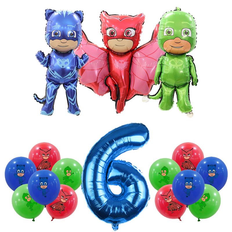 Pjm Mask Birthday Party Decoration Aluminum Foil Balloon For Kid Event Supplies Disposable Tableware Banner Backdrop Gift
