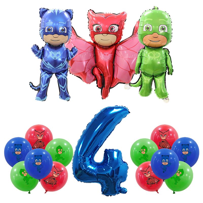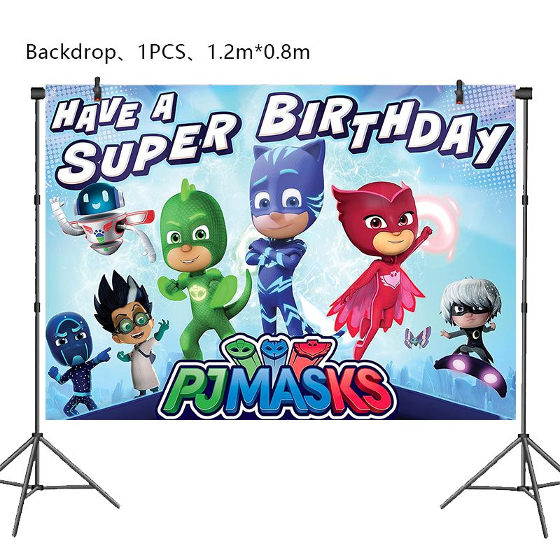 Pjm Mask Birthday Party Decoration Aluminum Foil Balloon For Kid Event Supplies Disposable Tableware Banner Backdrop Gift