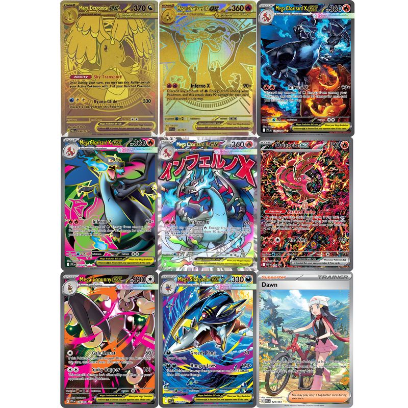PKM Mega Dream ex Phantasmal Flames Inferno X Set Dragonite Gengar Charizard X SAR/MA/MUR Rare Card Replica Proxy Game Cards
