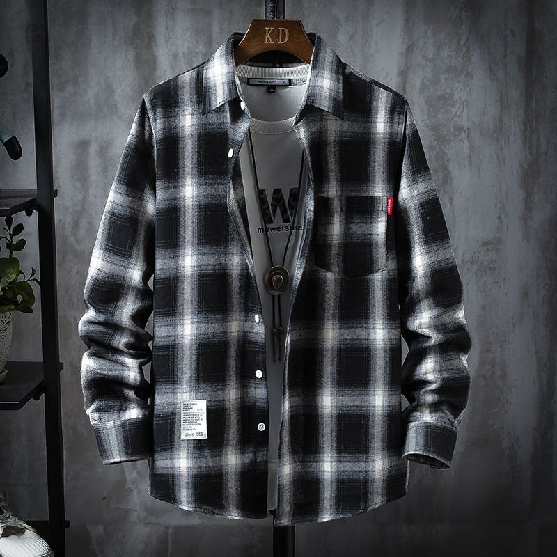 Plaid Shirt Jacket Men's Shirt Long Sleeve Casual Black M