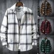 Plaid Shirt Jacket Men's Shirt Long Sleeve Casual White M