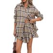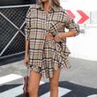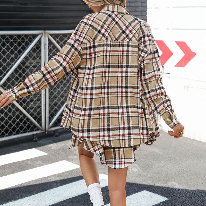 Plaid Skirt Casual Polo Collar Shirt Two-piece Suit Khaki S