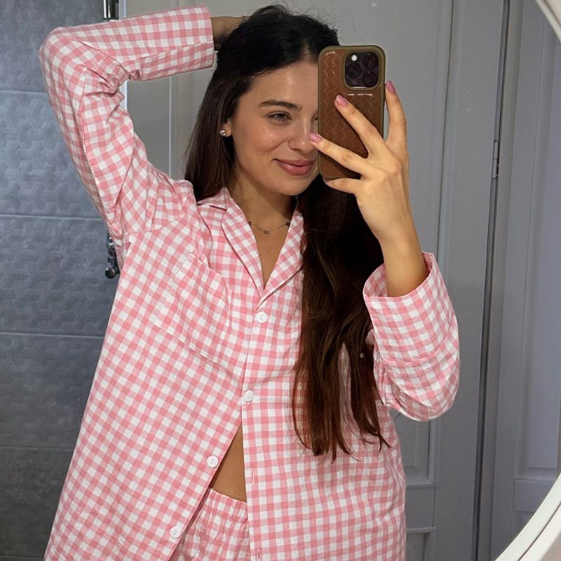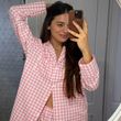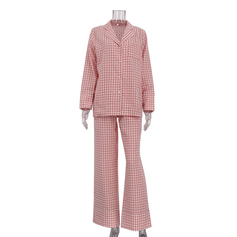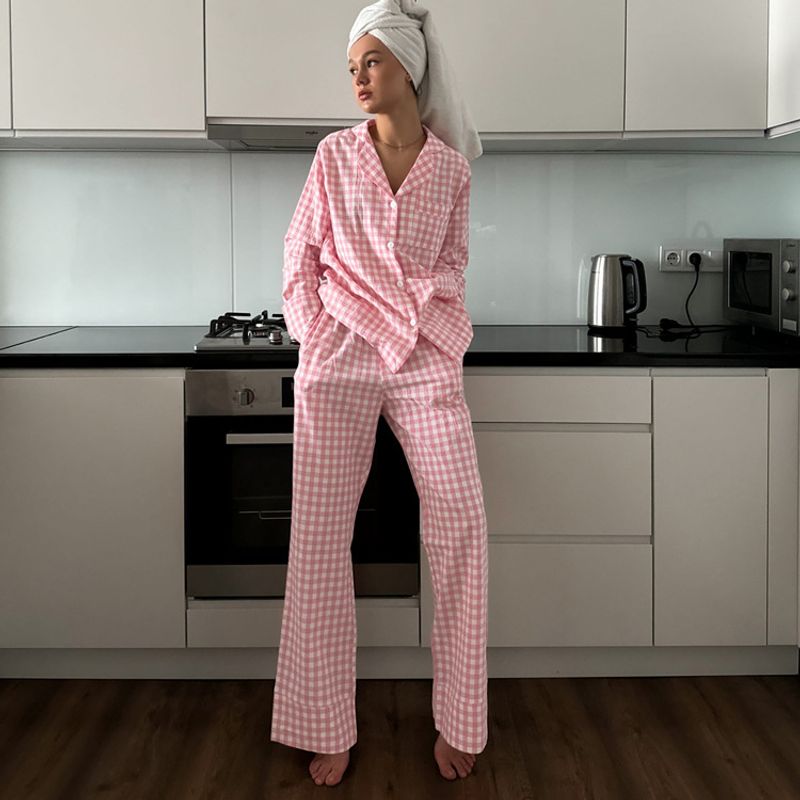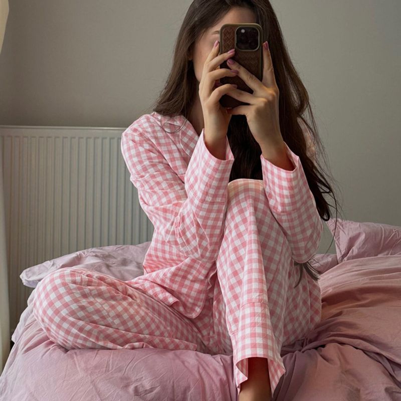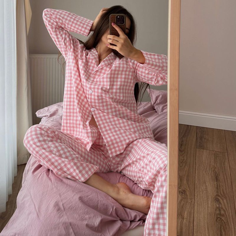 Plaid Suit Women's Fashion Polo Collar Long Sleeve Pink S