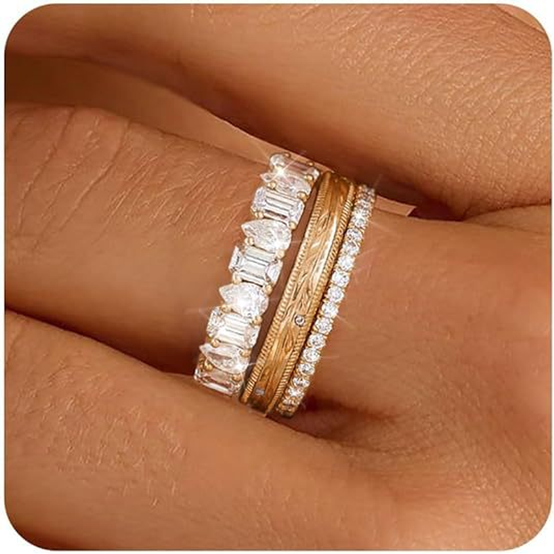 Plain Band Set Minimalist Slim Ring 5 Golden 3pcs No 10