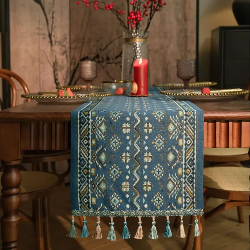Plant Flower Table Runner with Tassels Jacquard Living Room Cabinet Cover Kitchen Dining Table Runner Party Decoration