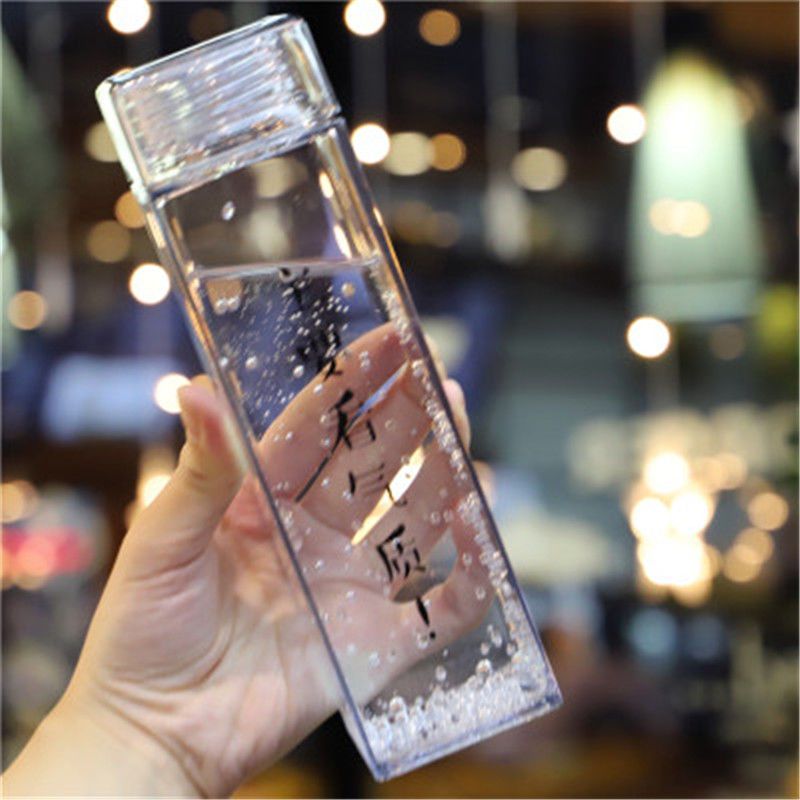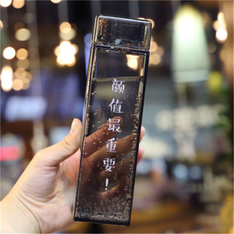 Plastic Cup Net Red Harajuku Style Square Water Cup Male Personality Trend Portable Summer Water Bottle The most important square plas 450ml