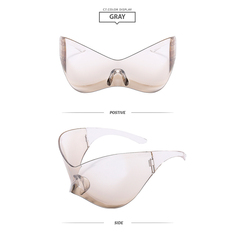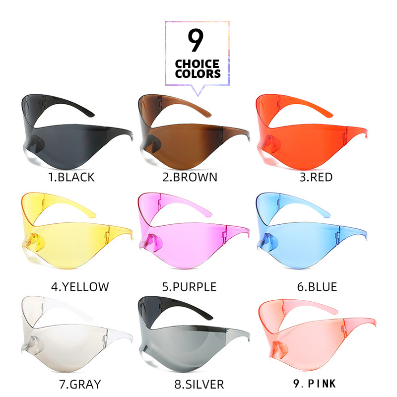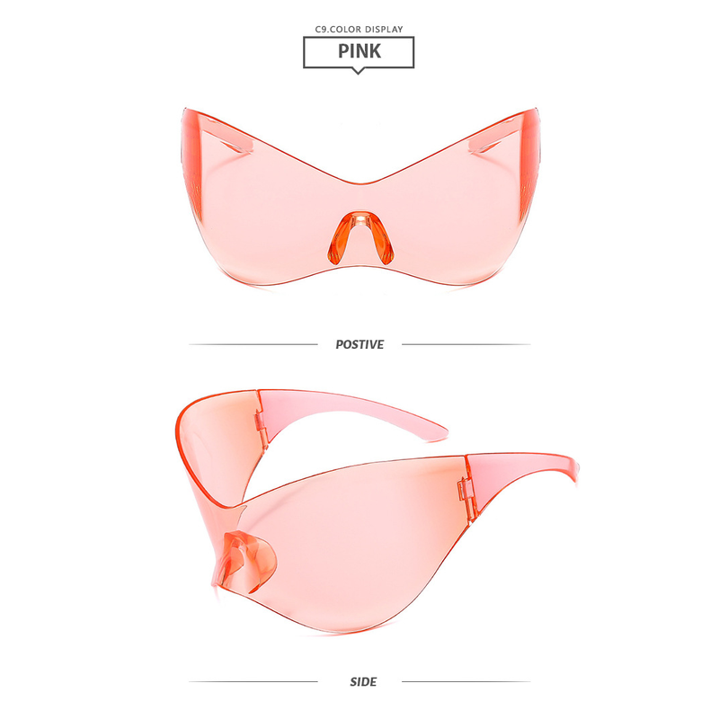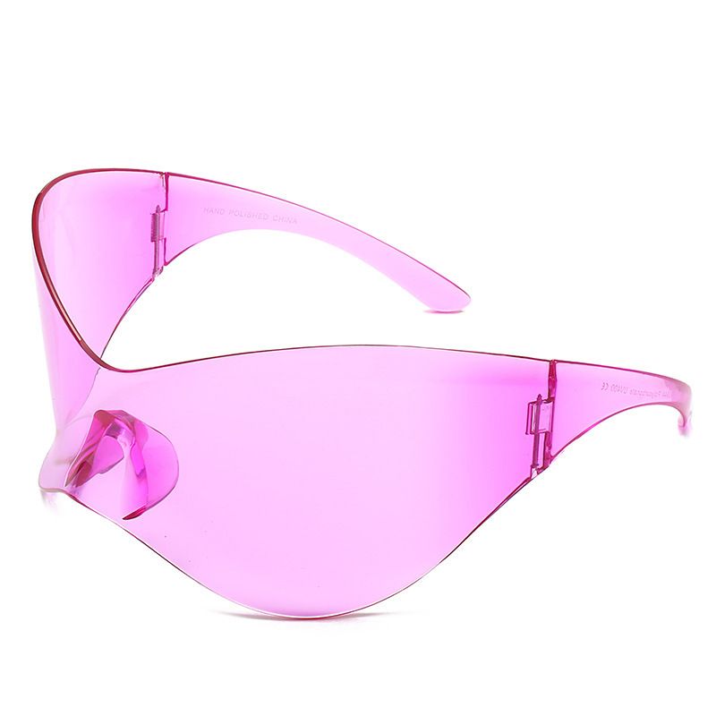 Plastic Fashion Y2g Future Technology Sense Super Large Rim Siamese Sports Personalized Sunglasses Ins Sunglasses Of Same Style With Internet Celebrity Pink Lens