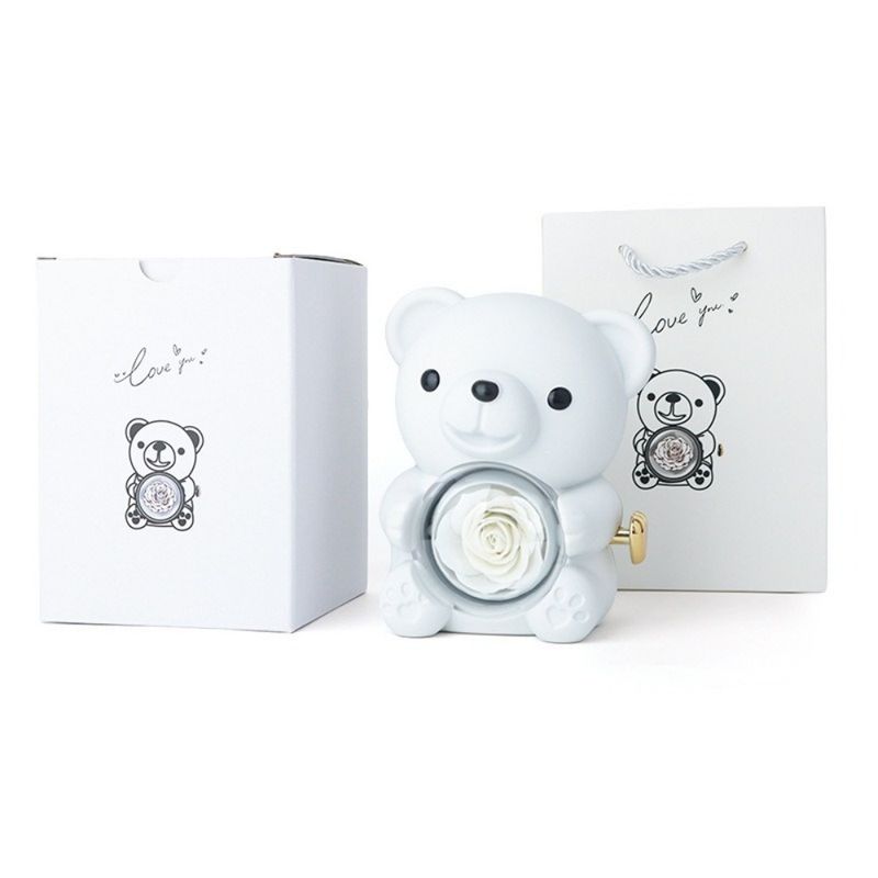 Plastic Rotating Hugging Bear Jewelry Box Romantic Cute Rose Bear Gifts Box with Soap Rose Jewelry Display