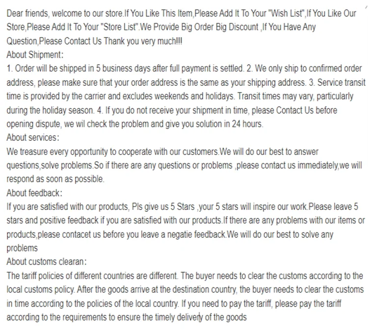 Please note that delivery times are estimates and may vary due to customs procedures, carrier delays, weather conditions, or other unforeseen circumstances.