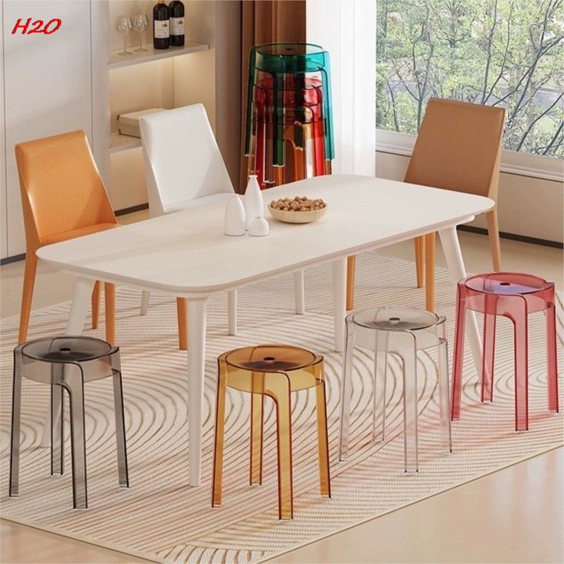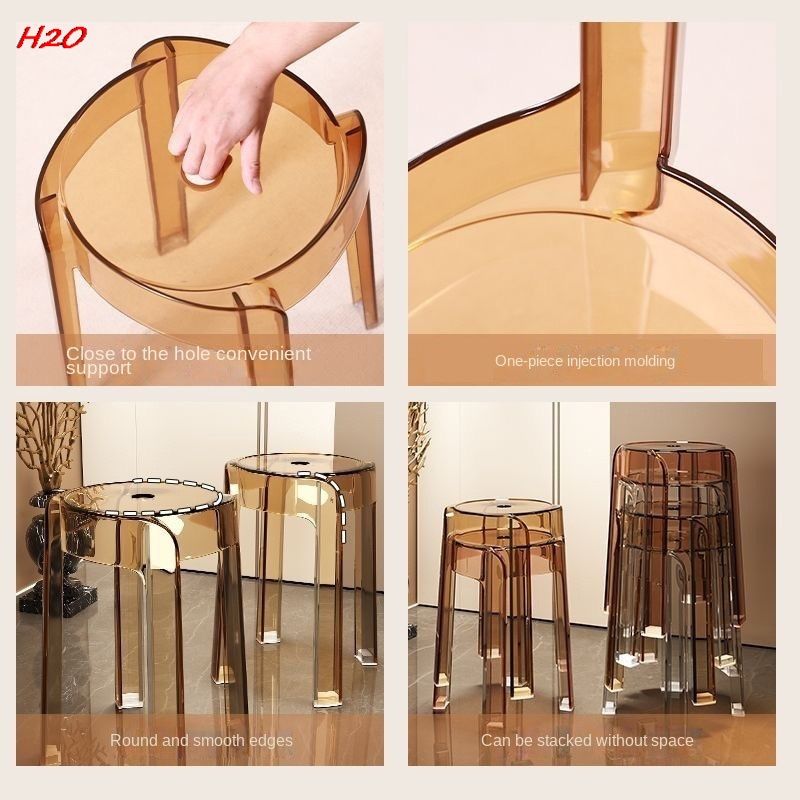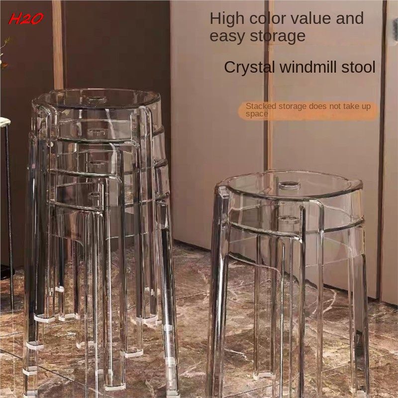 Plastic Stool For Household Use Thickened And Stackable Acrylic Transparent Stool Simple Restaurant Spare Chair Windmill Round