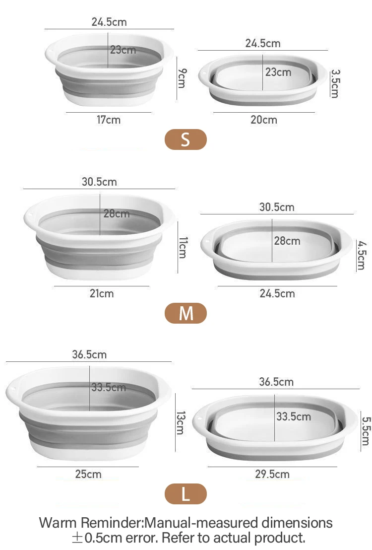 Plastic Wash Basin Folding Tub for Laundry Foldable Camping Basin Collapsible Washing Bowl Portable Wash Basins for Home BXLP01