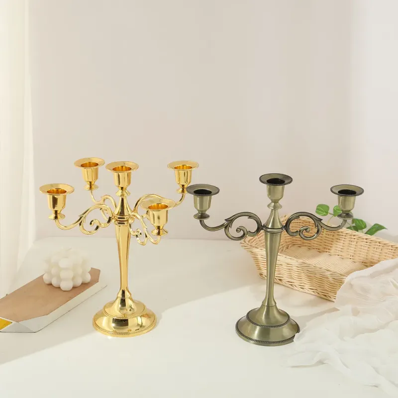 Plated Candle Holder Retro 3-Arms Bronze Candelabra For Wedding Prop Gold Candlelight Dinner Hotel Metal Home Decoration