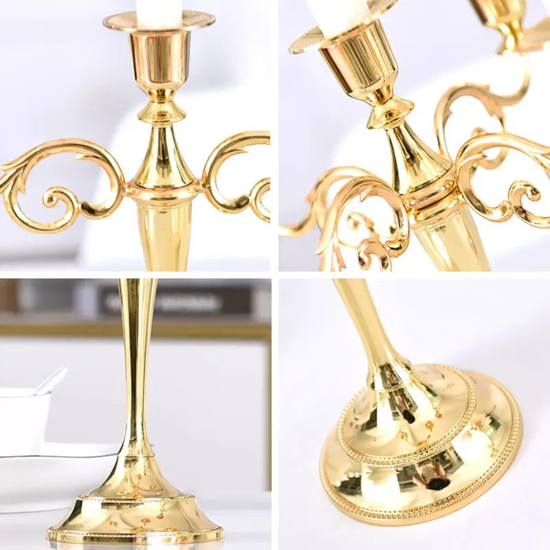 Plated Candle Holder Retro 3-Arms Bronze Candelabra For Wedding Prop Gold Candlelight Dinner Hotel Metal Home Decoration