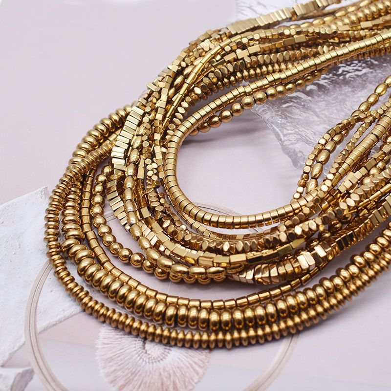 Plating Gold Color Retention Natural Hematite Stone Spacer Loose Beads For Jewelry Making Diy Bracelets Finding
