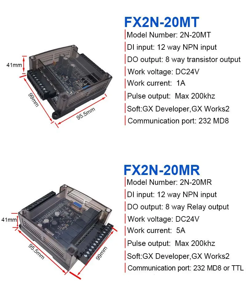 PLC FX2N-20MR FX2N-20MT Programmable Logical Controller DC Transistor/Relay Module Industrial Control Board 12 Input 8 Output