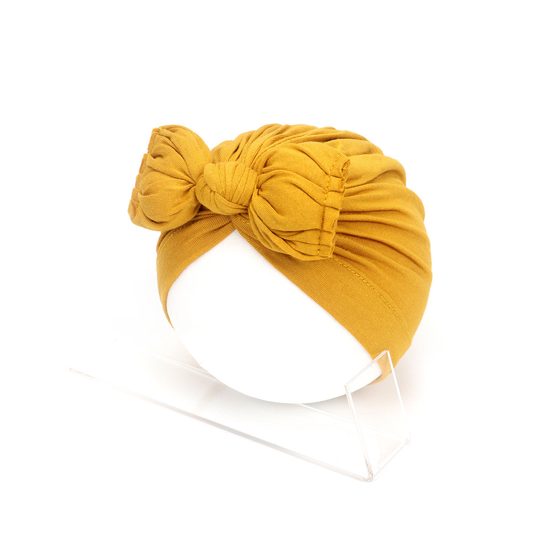 Pleated Baby Hat Bow Solid Color Pullover Indian Hat Mustard Yellow Free Size