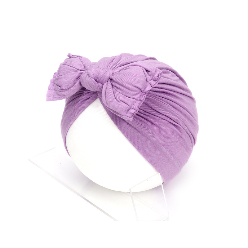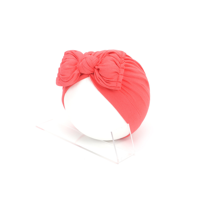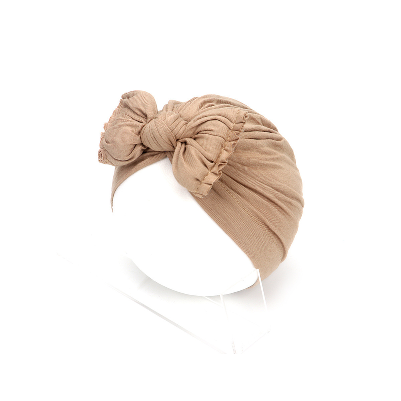 Pleated Baby Hat Bow Solid Color Pullover Indian Hat Rust Red Free Size