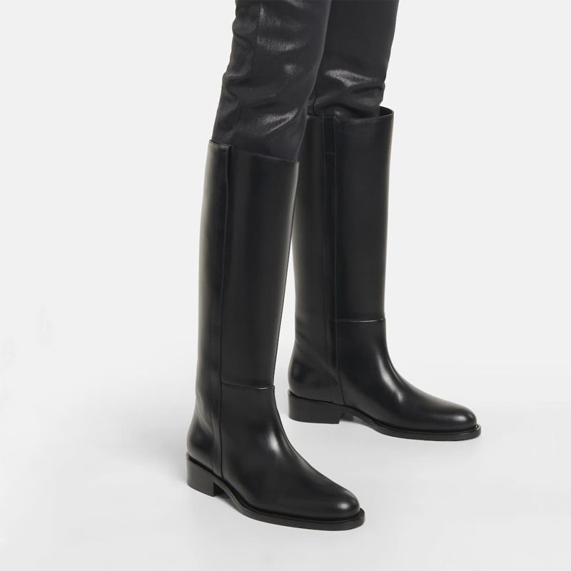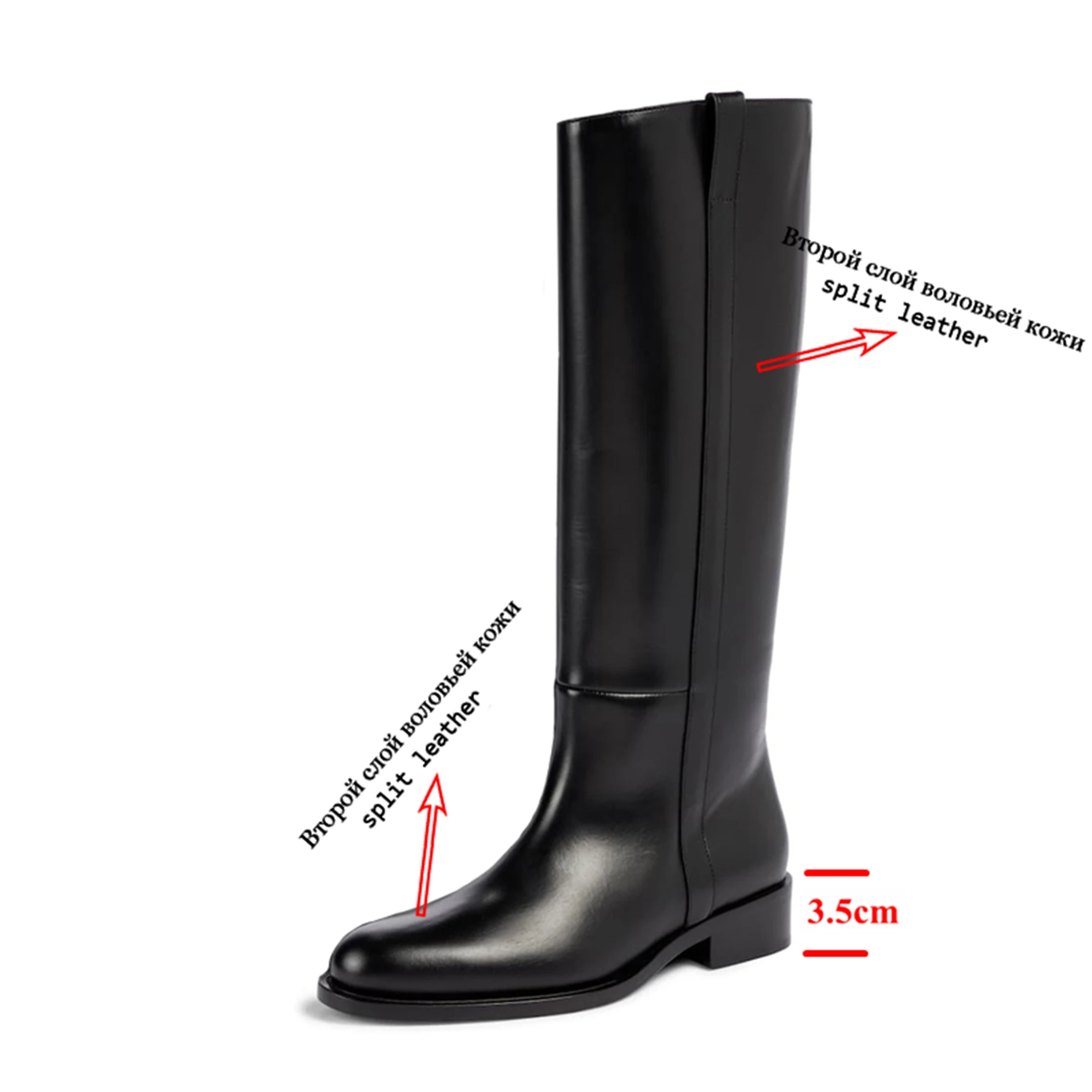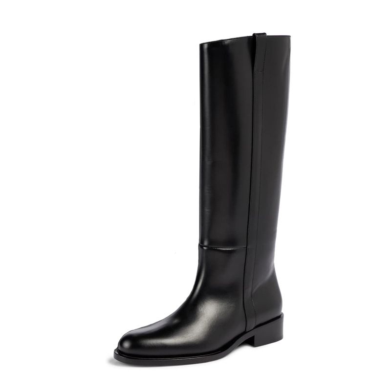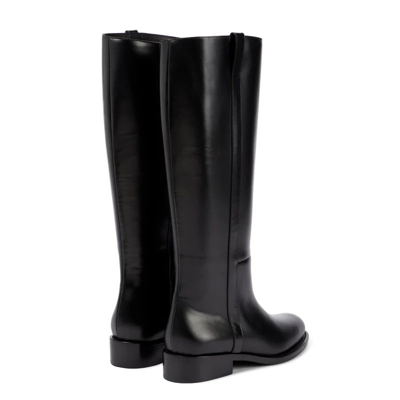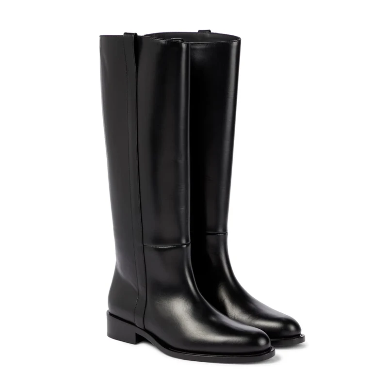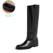 Plus Size 33-46 Cow Leather Round Toe Med Heels Long Riding Boots Warm Winter Shoes Retro Dating Ins Brand Women Knee-high Boots