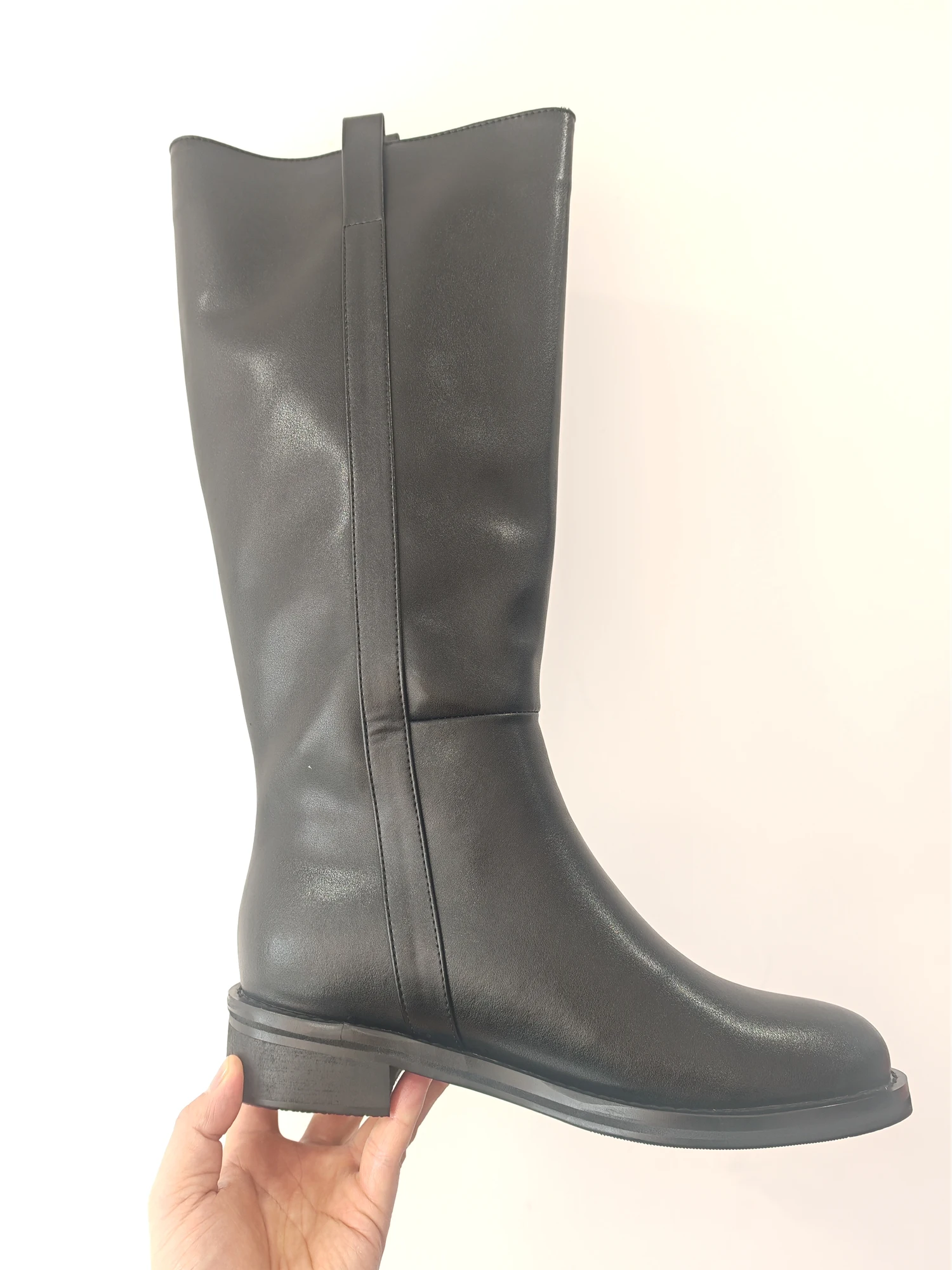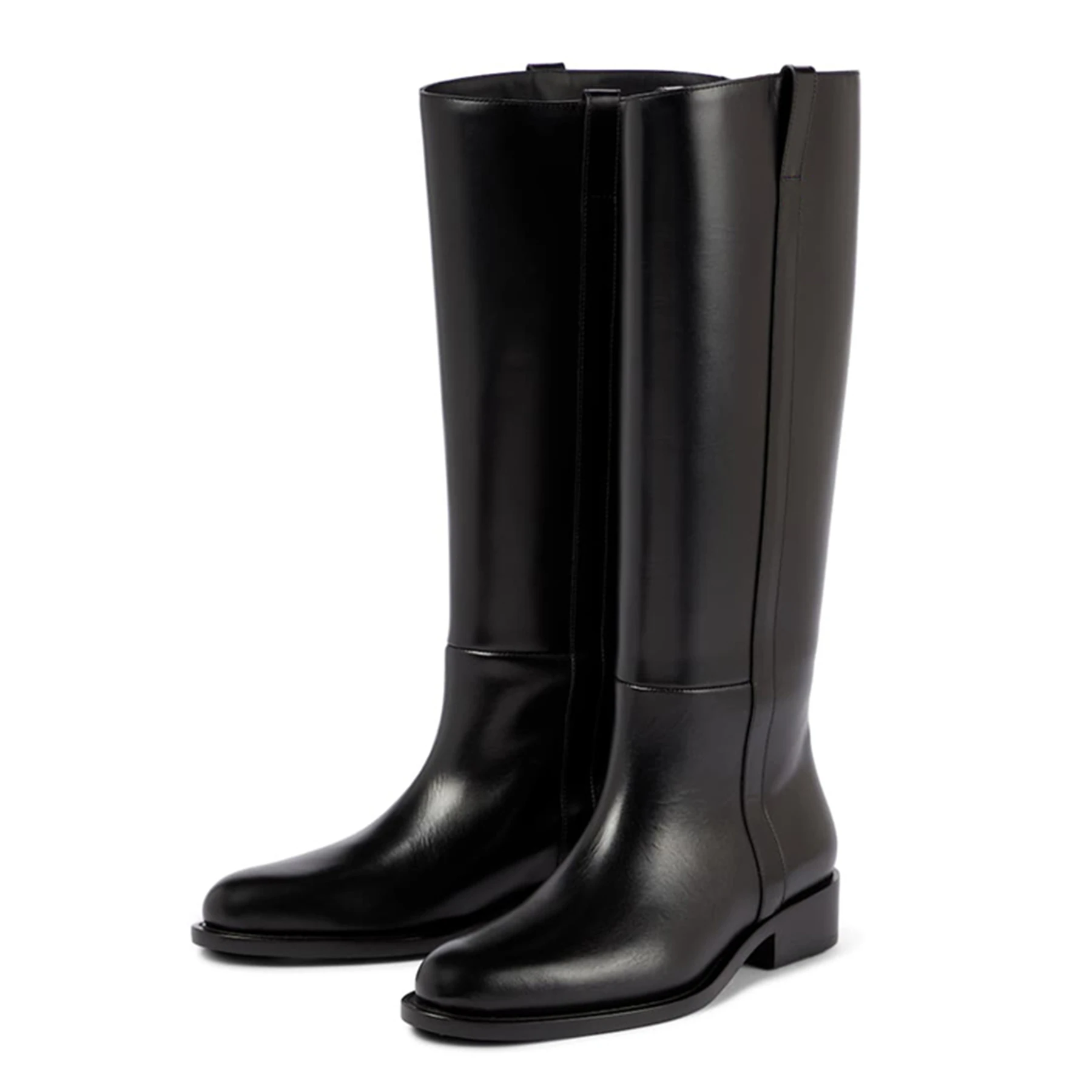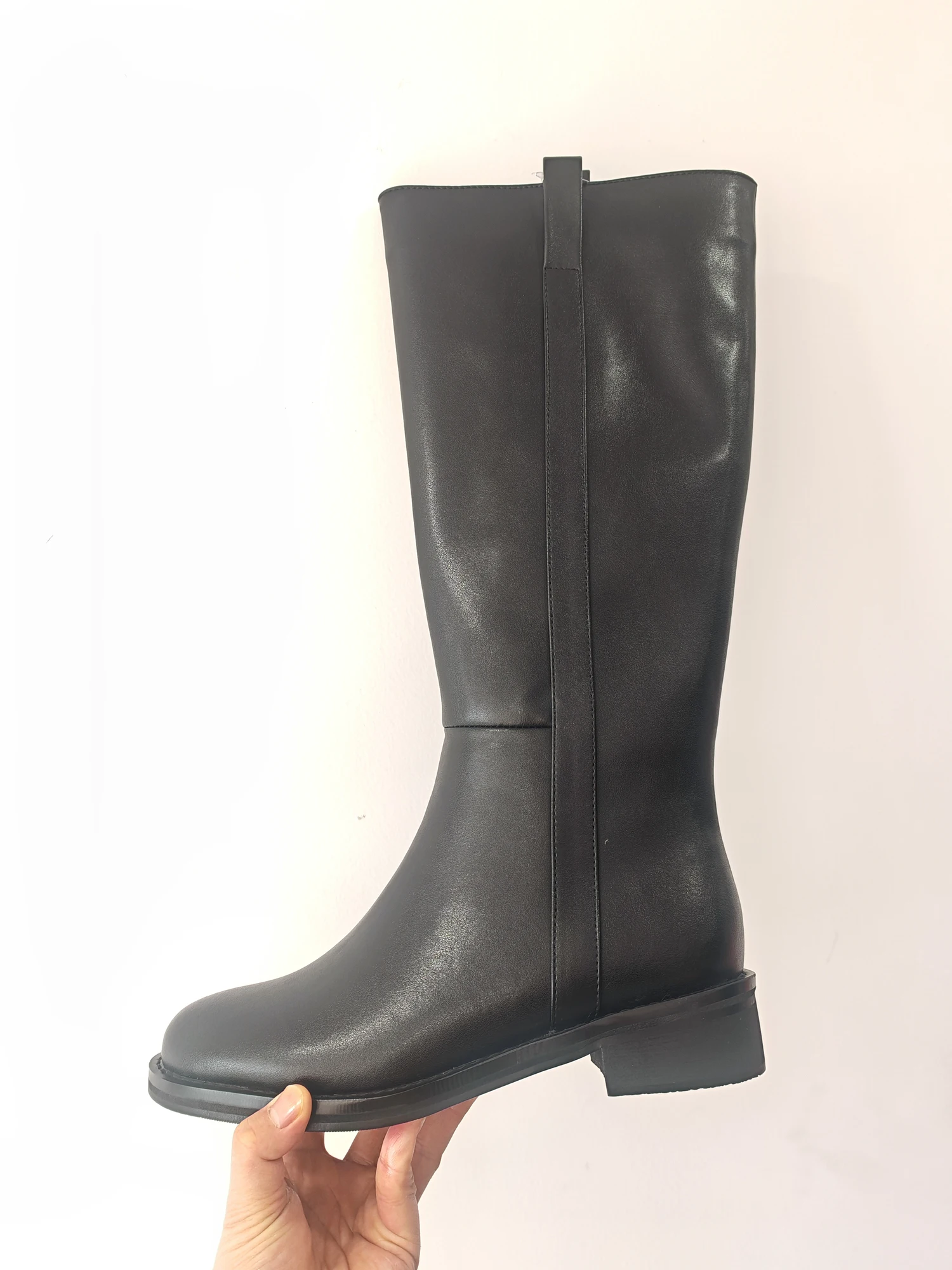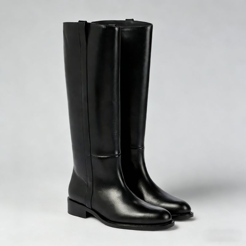 Plus Size 33-46 Cow Leather Round Toe Med Heels Long Riding Boots Warm Winter Shoes Retro Dating Ins Brand Women Knee-high Boots