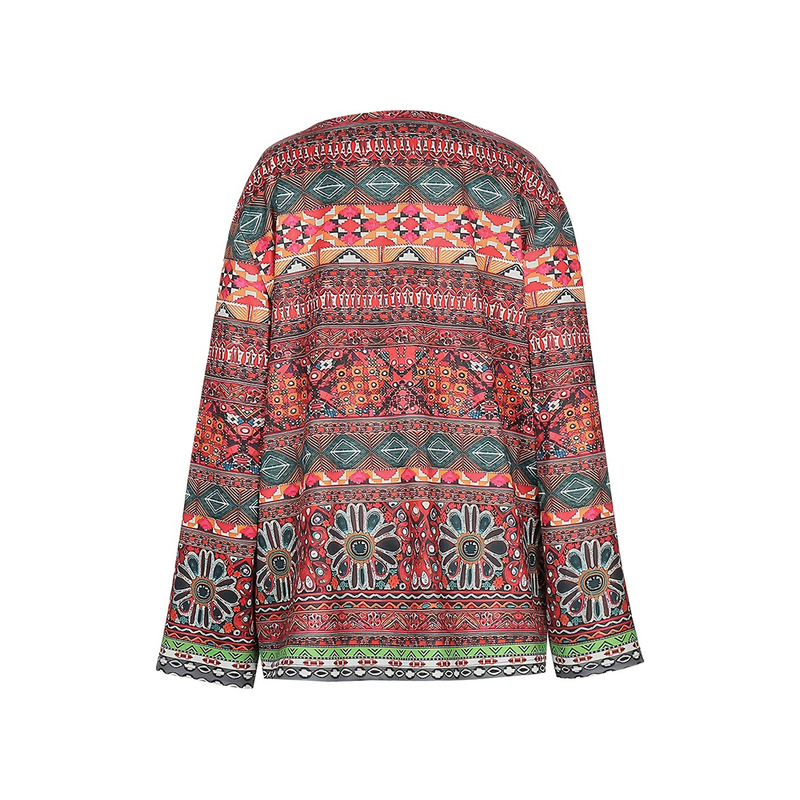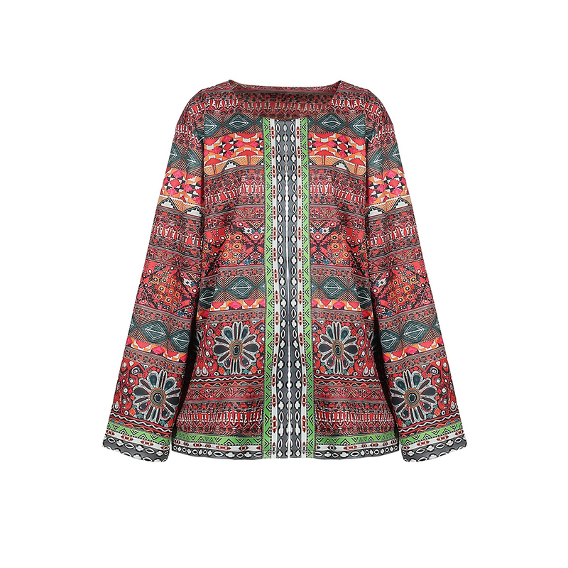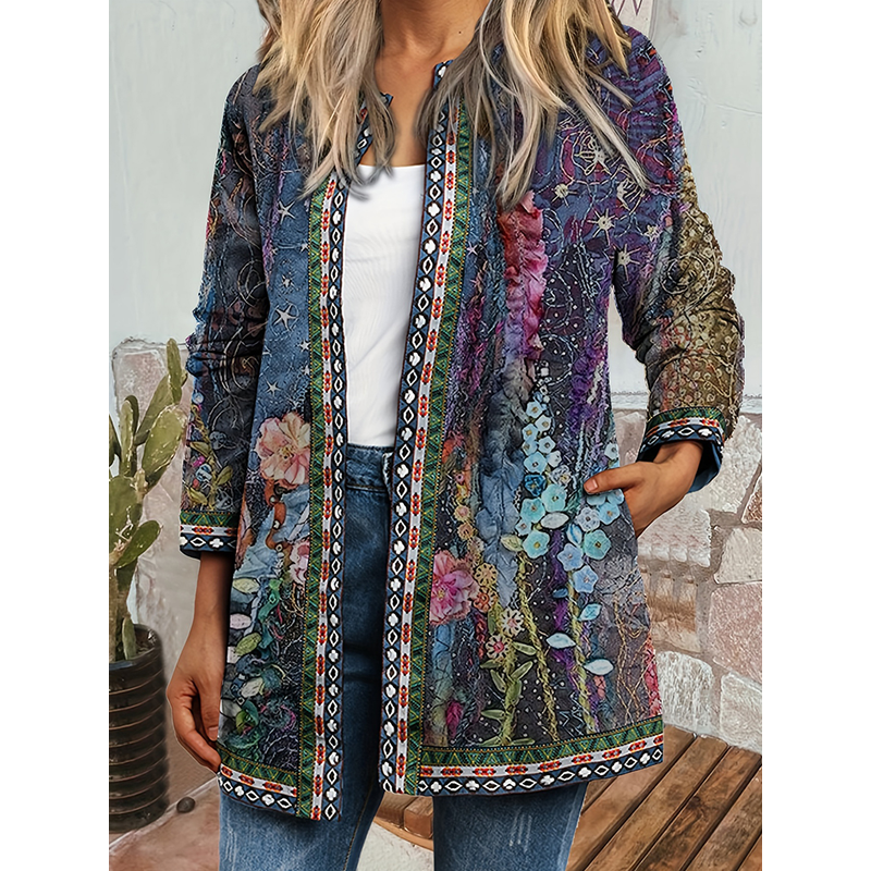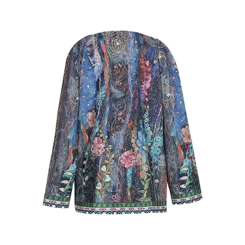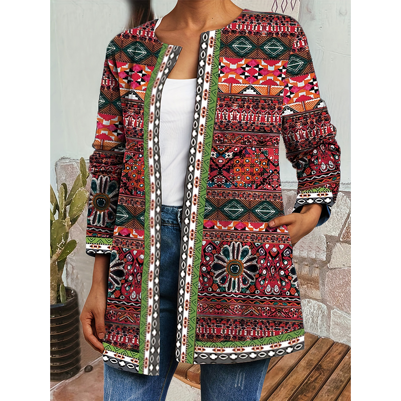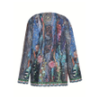 Plus Size Colorful Boho Floral Print Open Front Cardigan, Casual Loose Long Sleeve Lightweight Jacket with Pockets