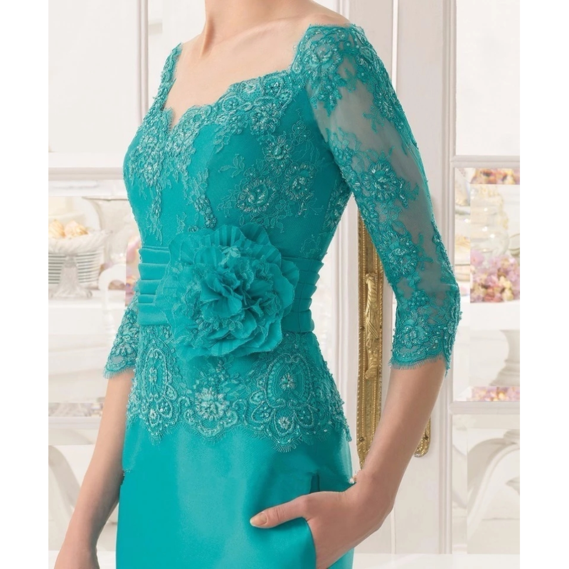 Plus Size Mother Of The Bride Dresses Sheath 3/4 Sleeves Chiffon Appliques Bead Long Groom Mother Dresses For Wedding Customized