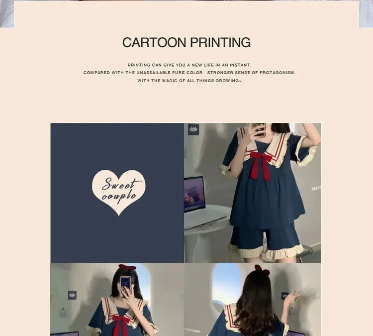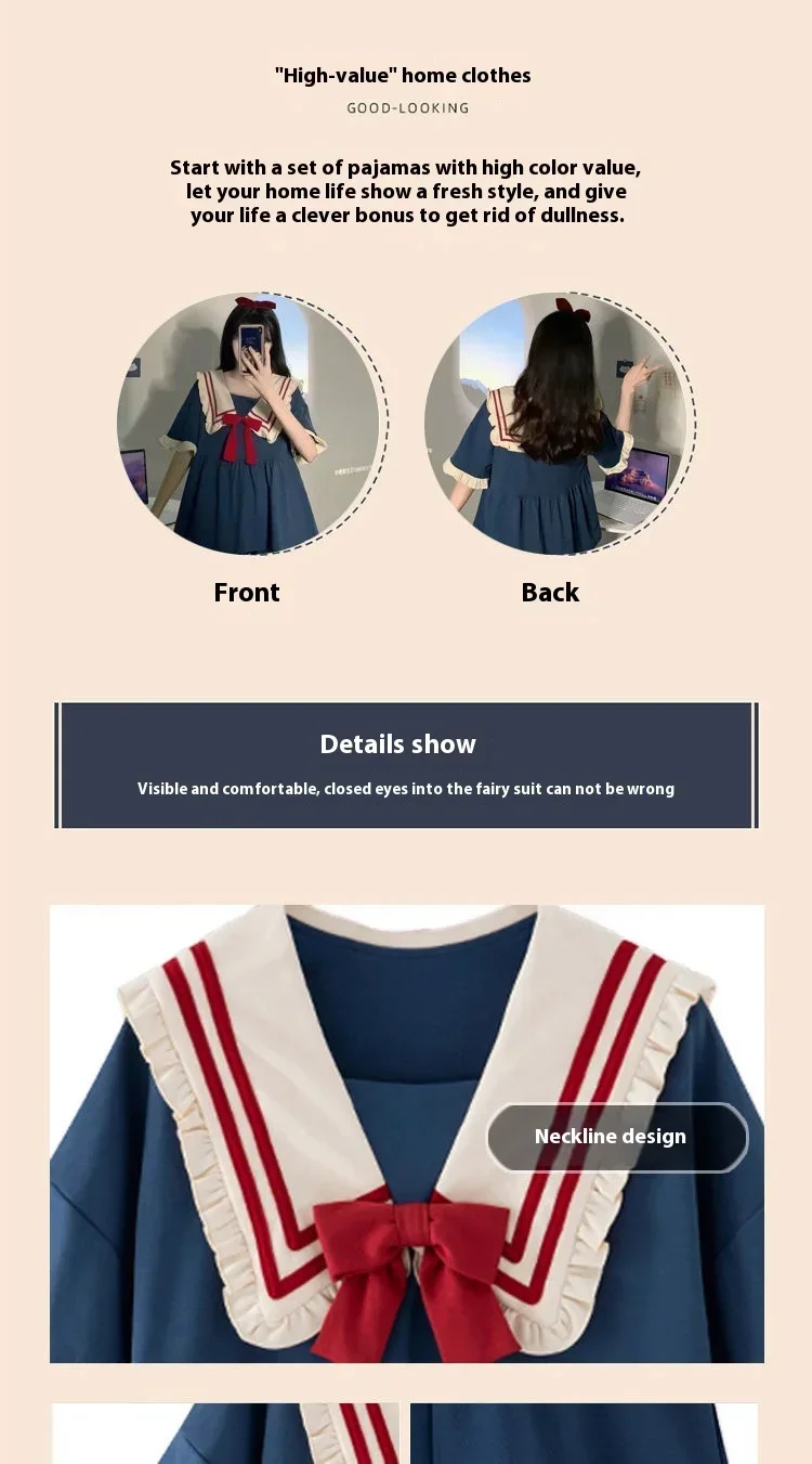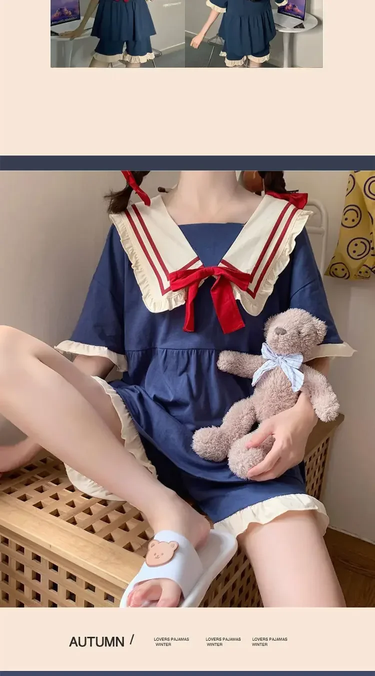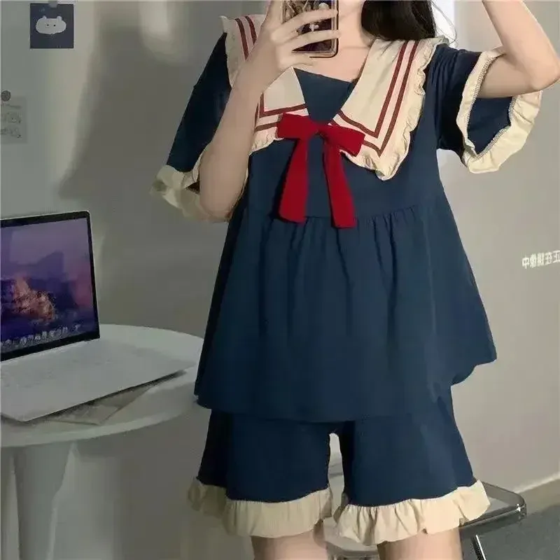 Plus Size Pajamas Sweet Women's Homewear Doll Neck Girl's Pajamas Kawaii Dress Solid Color Short Sleeve Shorts 2PCS/Set Student