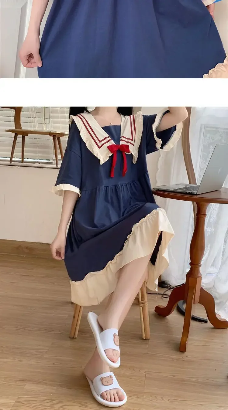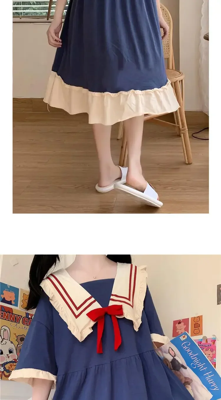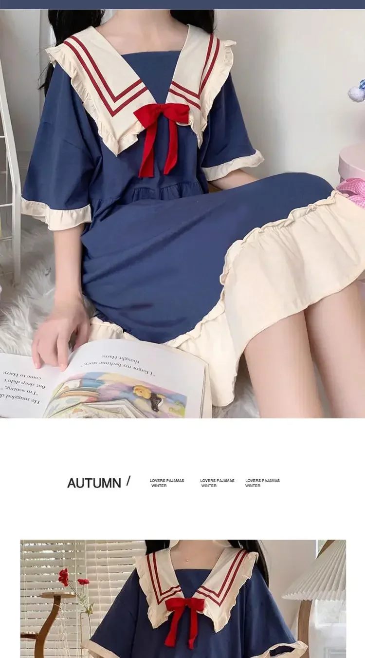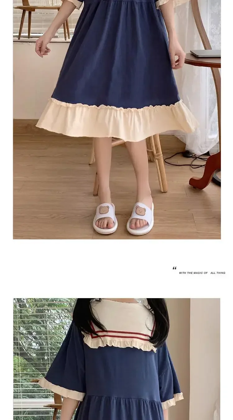 Plus Size Pajamas Sweet Women's Homewear Doll Neck Girl's Pajamas Kawaii Dress Solid Color Short Sleeve Shorts 2PCS/Set Student