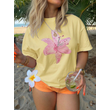 Plus Size Women's Floral Design Pattern Printed T-shirt Summer Minimalist Casual Texture High Quality Short Sleeve Pullover Tops