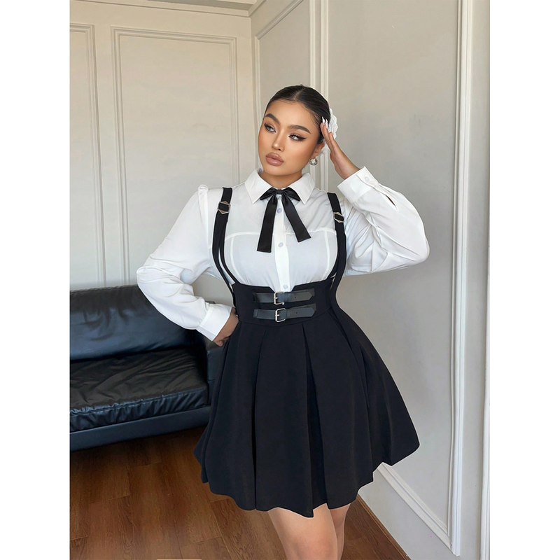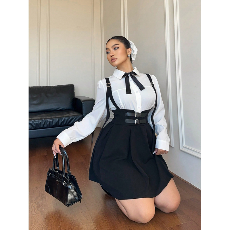Plus Size Women's High Waisted Solid Colour Peplum Casual Suspender Skirt Elegant Casual Pure Colour Y2K Skirt