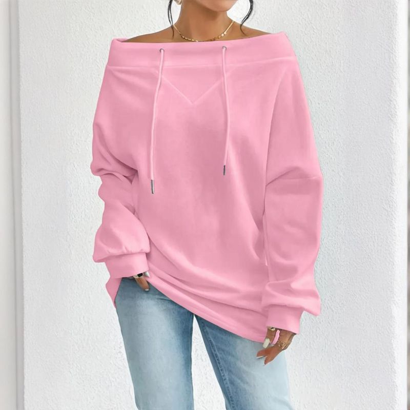 Embrace comfortable style with this Off-Shoulder Drawstring Pullover!