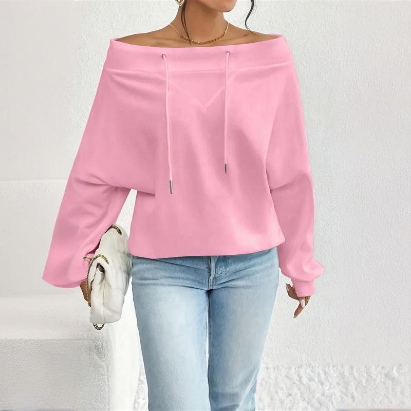 Embrace comfortable style with this Off-Shoulder Drawstring Pullover!