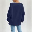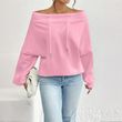 Plus Size Women's Solid Color Off-Shoulder Long Sleeve Pullover With Drawstring - Casual Ribbed Detail Top For Spring&Fall