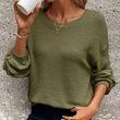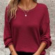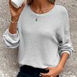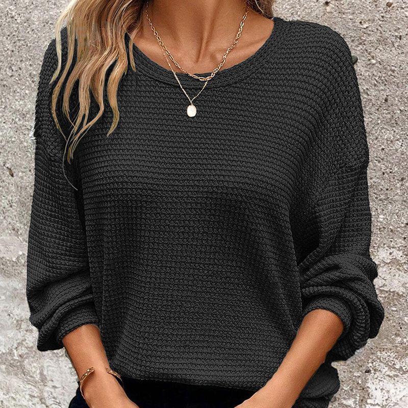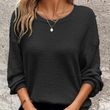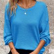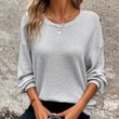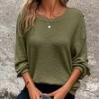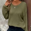 Plus Size Women's Waffle Knit Round Neck Drop Shoulder Long Sleeve Top - Casual Loungewear