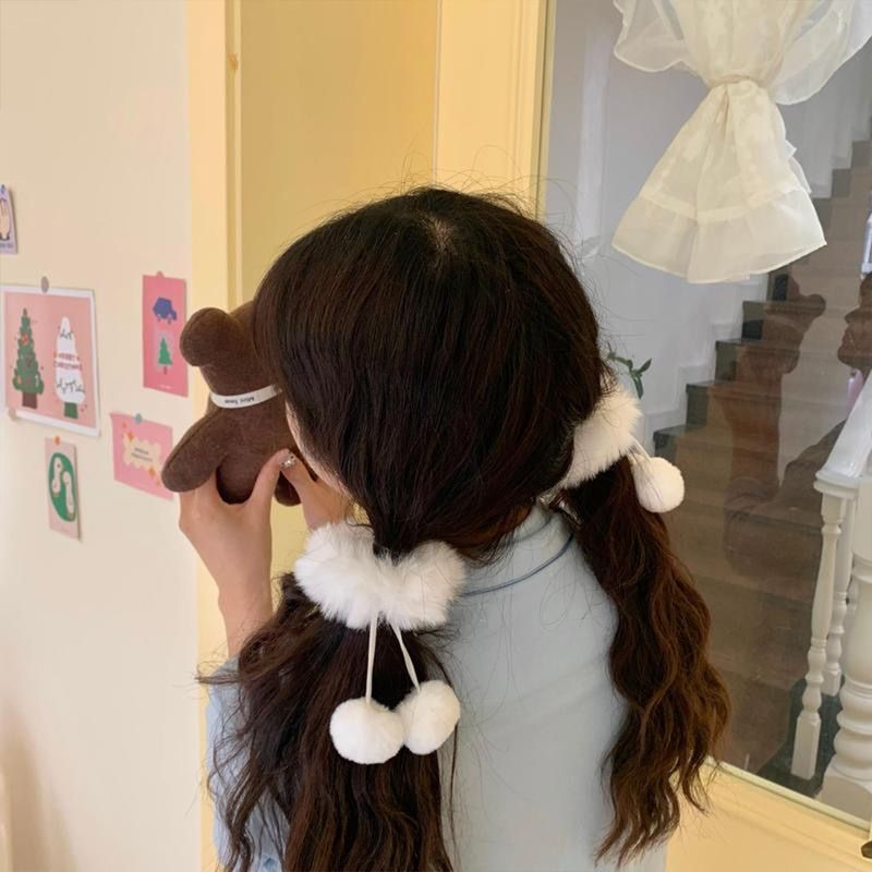 Plush hair ring, ball ball, cute girl, double ponytail hair rope, ball head, autumn and winter versatile hair accessories