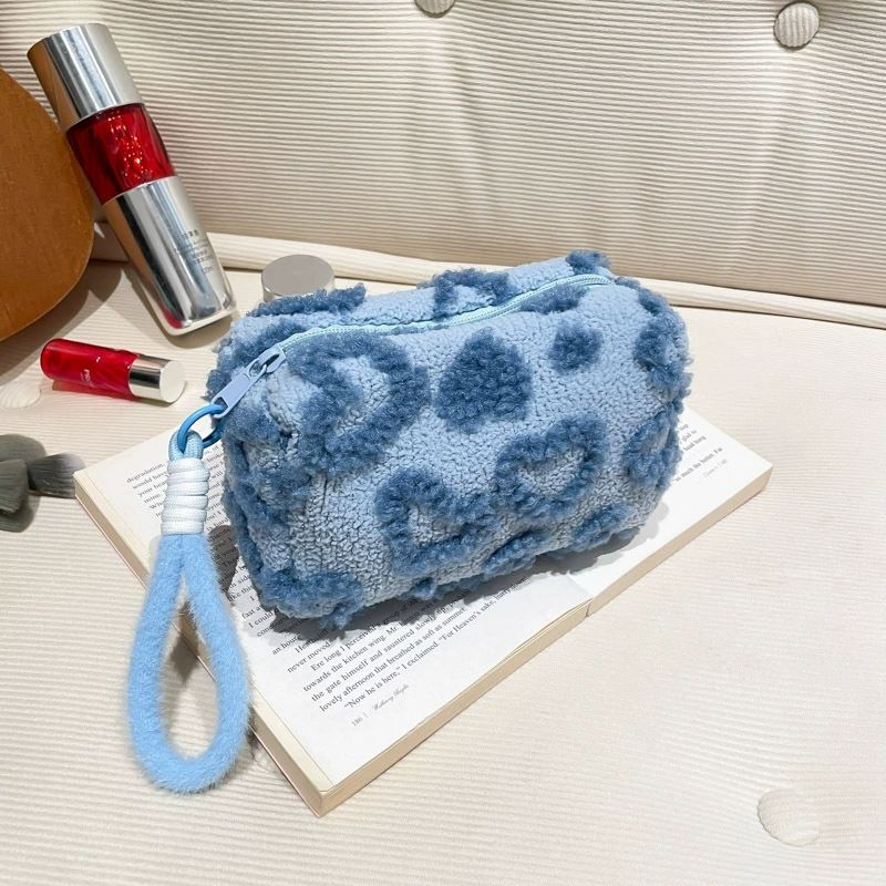 Plush Makeup Bags with Handle Soft Travel Cosmetic Storage Bag Portable Love Print Organizer Pencil Case Cute Clutch Pouch