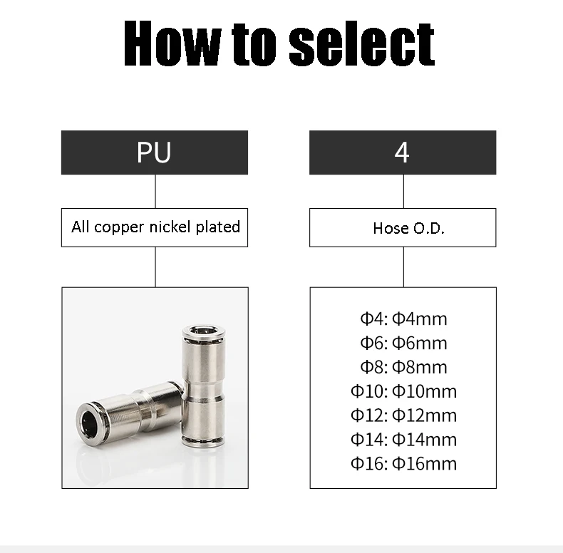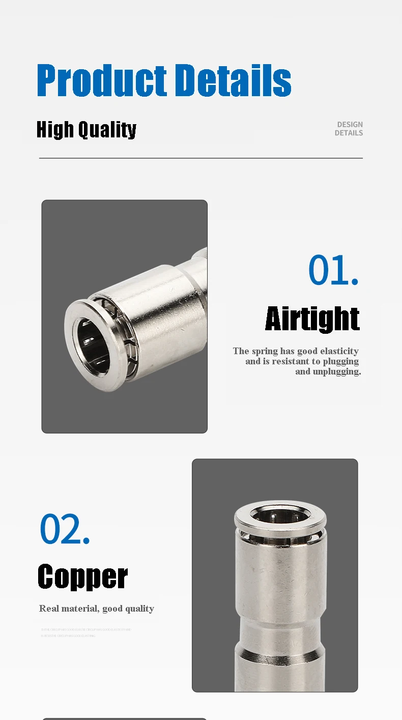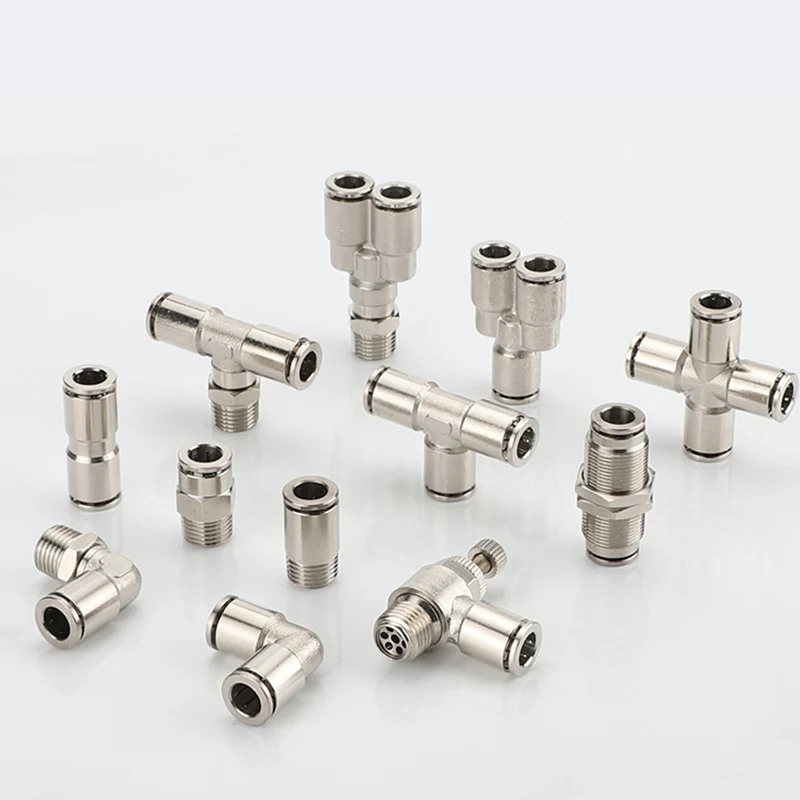 Pneumatic Air Hose Fitting PU PV PE PM PY Brass Metal Quick Coupling 4 6 8 10 12mm Nickel Plated High Pressure Tube Connector