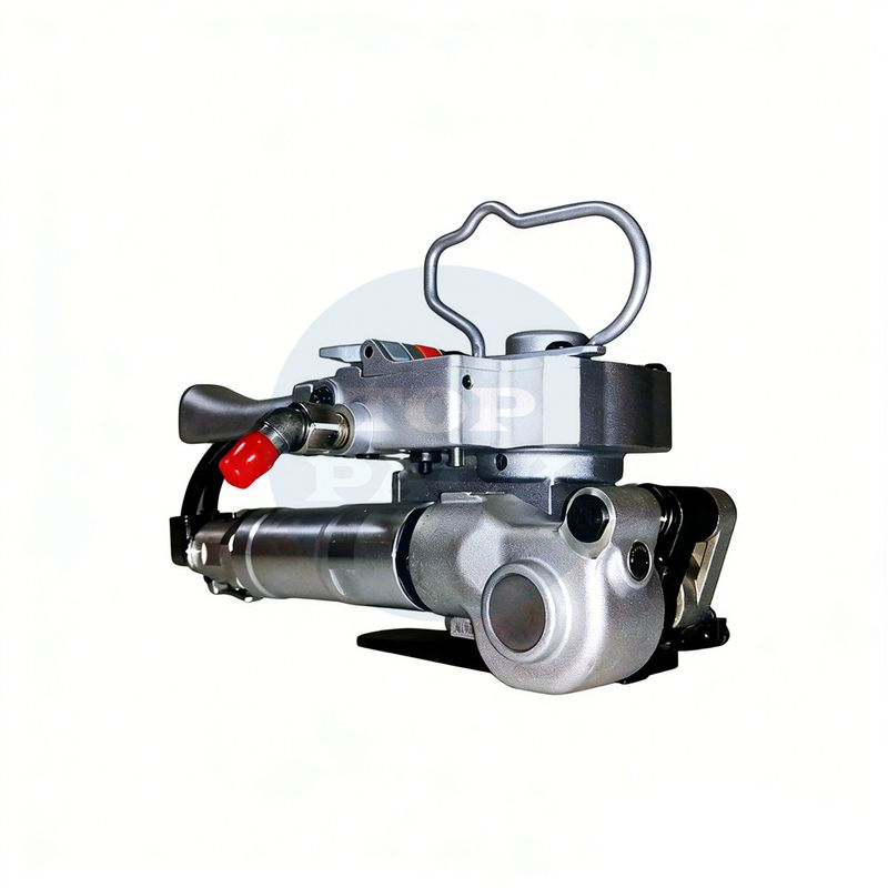 Driven by a pneumatic motor, it operates with low noise and consumes only 0.3L of compressed air per minute, ensuring economical use costs. It is compatible with environment-friendly PET/PP strapping tapes that are pollution-free and recyclable, complying with green packaging standards.