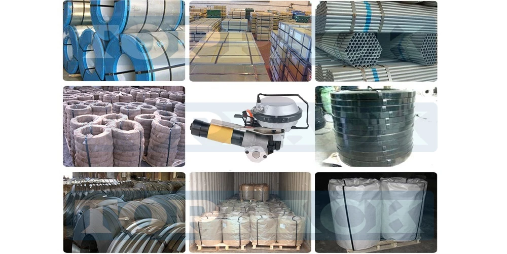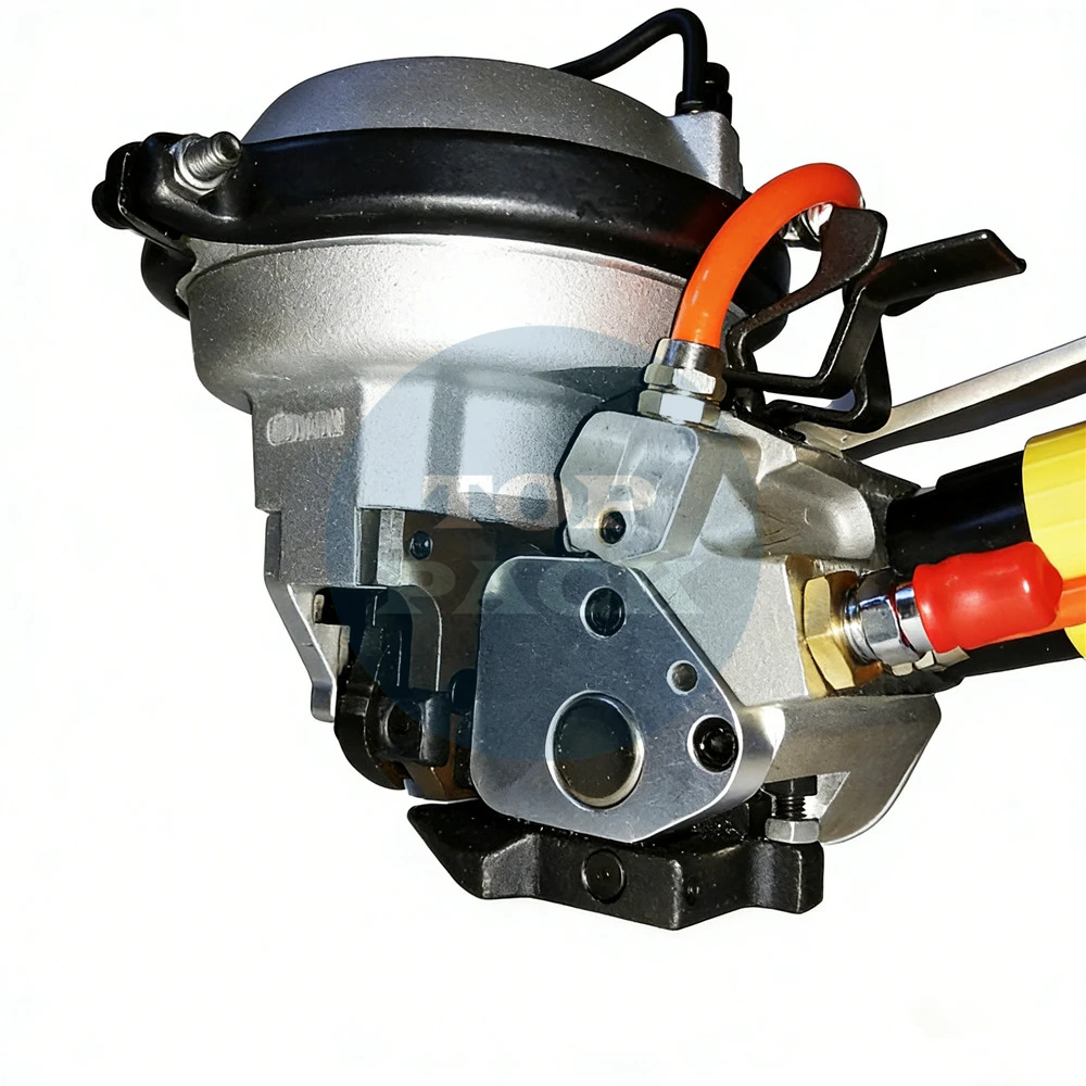 Complete the strapping process by using only one machine. It is an intergrated pneumatic strapping tool for steel belt. The tightening part and locking part are all in one machine.There is no air pump in the package, please prepare it by yourself. Air pressure limit: 0.4~0.6Mpa.
