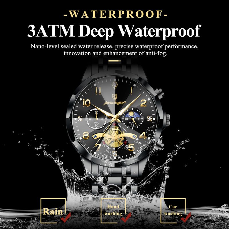 POEDAGAR Luxury High Quality Man Wristwatch Chronograph Stainless Steel Quartz Men's Watches Waterproof Luminous Men Clock Reloj