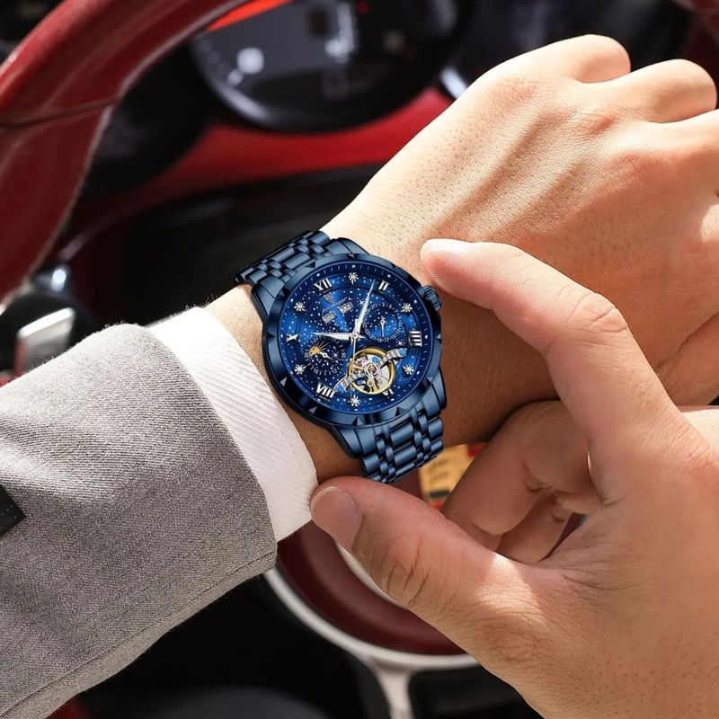 POEDAGAR Luxury Men Wristwatch Fashion Date Hollow Tourbillon Man Clock Automatic Mechanical Stainless Steel Men's Watches Reloj