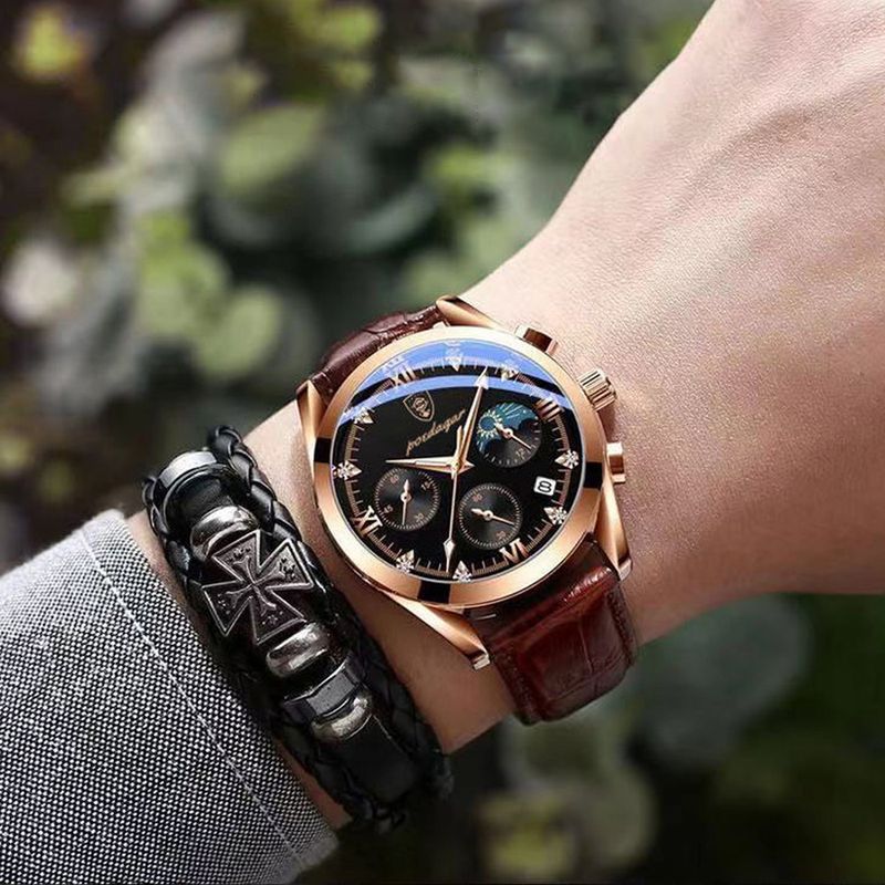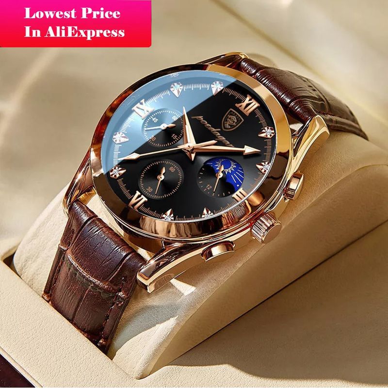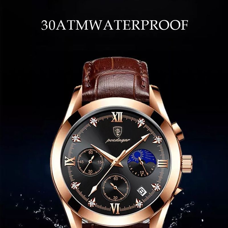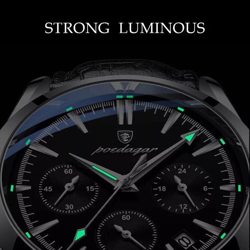 POEDAGAR New Fashion Men Watch Top Brand Luxury Men's Leather Quartz Wristwatch Sports Waterproof Luminous Date Male Clock + Box