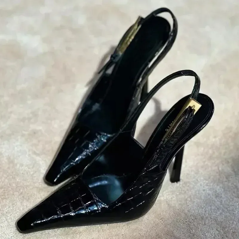 Pointed Stiletto Heels Women Pumps Patent Leather 2024 Summer Designer Mule Sandals Elegant Sexy Office High Heels Women Shoes