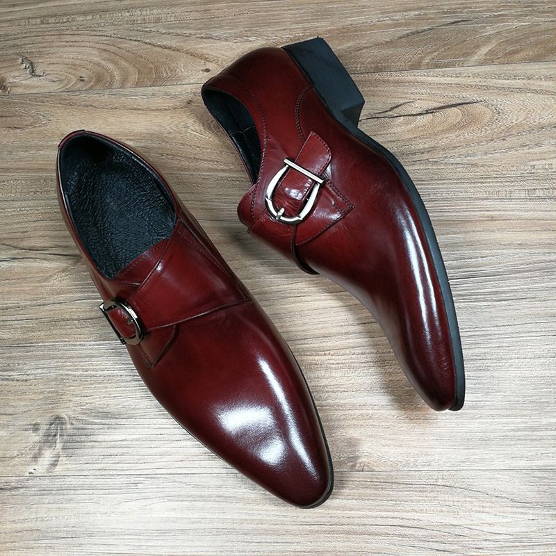 Pointed Toe Business Leather Shoes Work Men'S Buckle Shoes Red 48